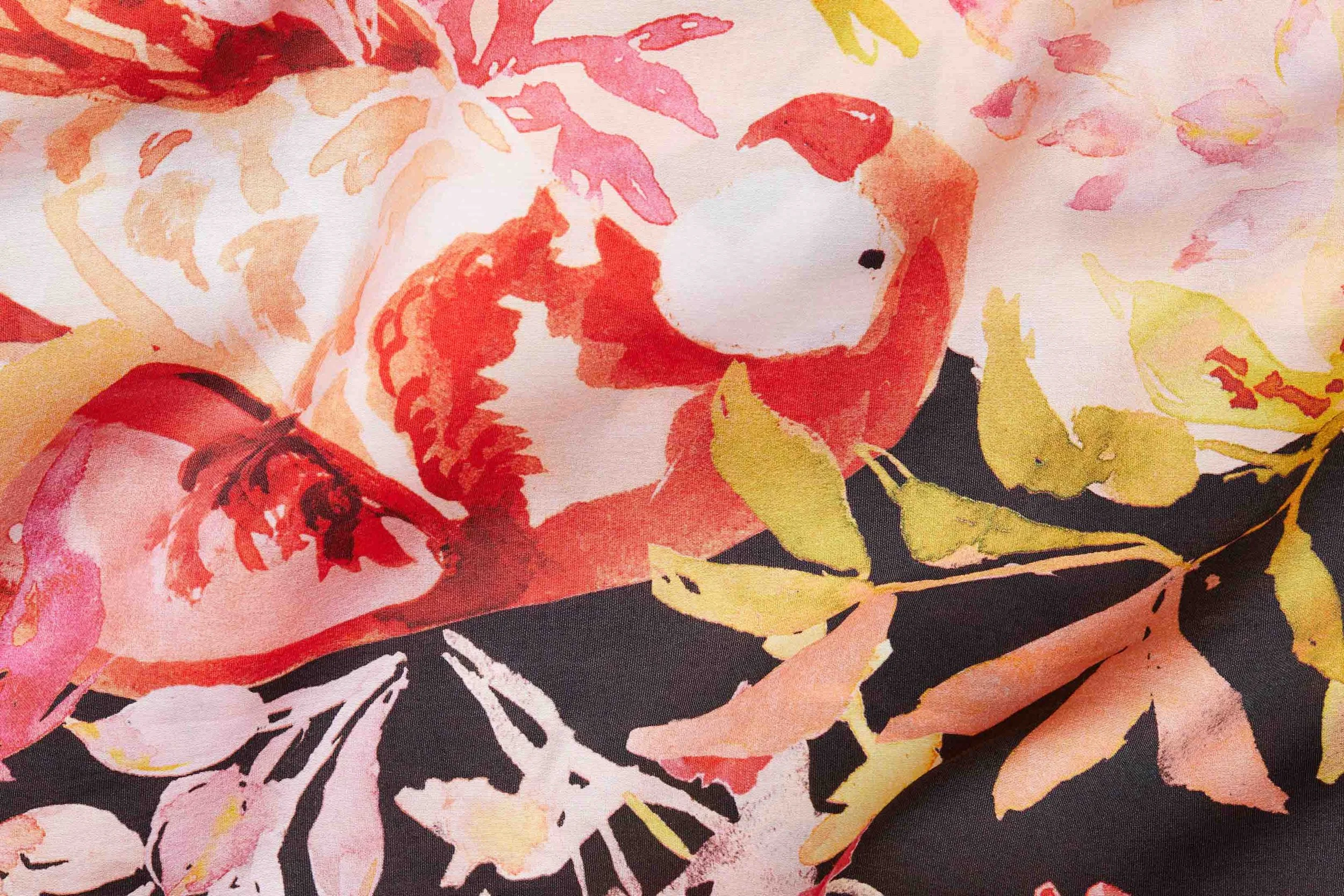 The exploration of the expressive potential of surface sits at the very core of every design project. Blending traditional mark-making with digital innovation, her practice spans across print, knit and mixed media surfaces, where gestural painting meets engineered placement, and texture becomes a language. Whether working with brushstrokes, pixels or yarn, every design is conceived to live within the fabric, enhancing its rhythm, weight and flow.